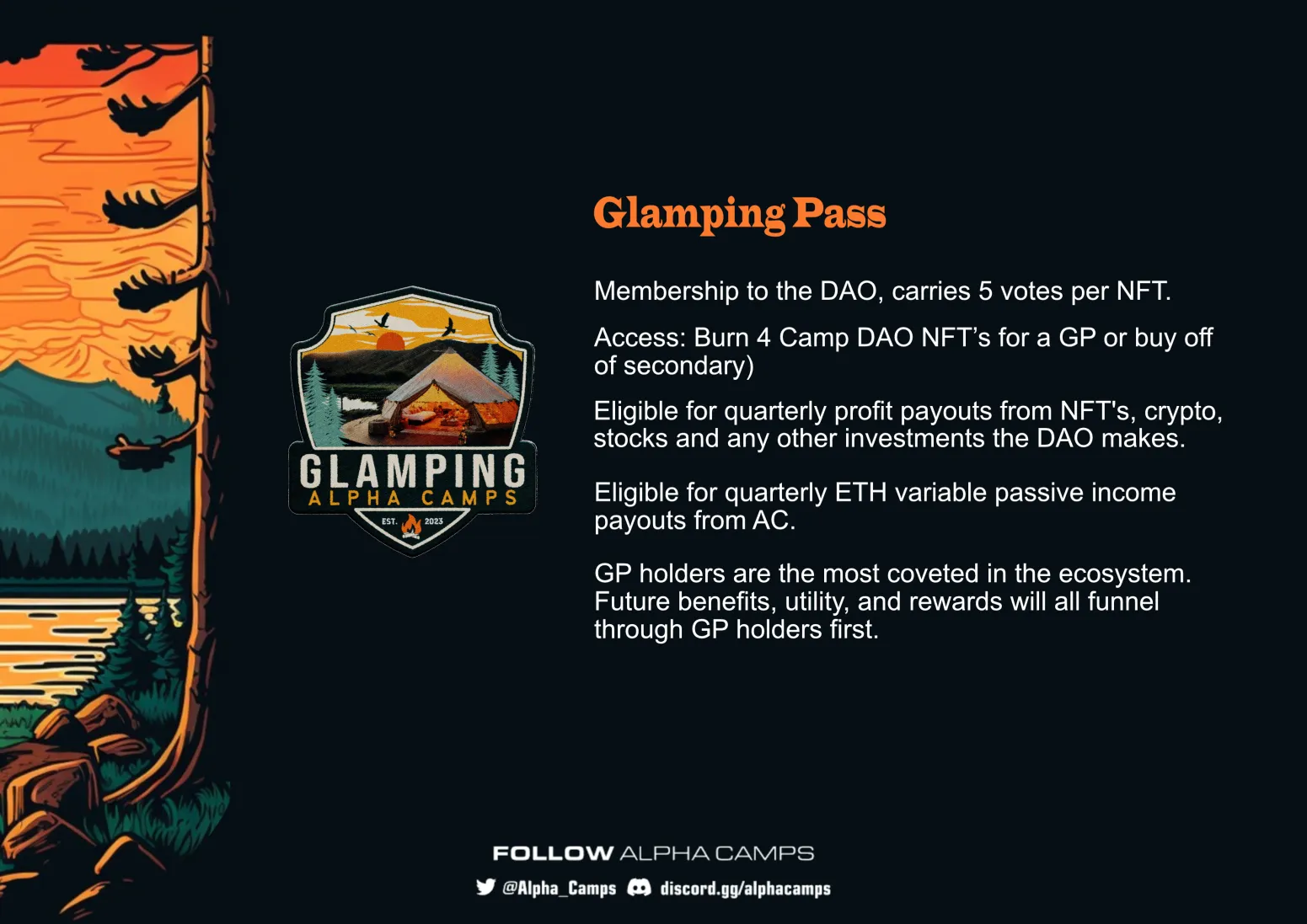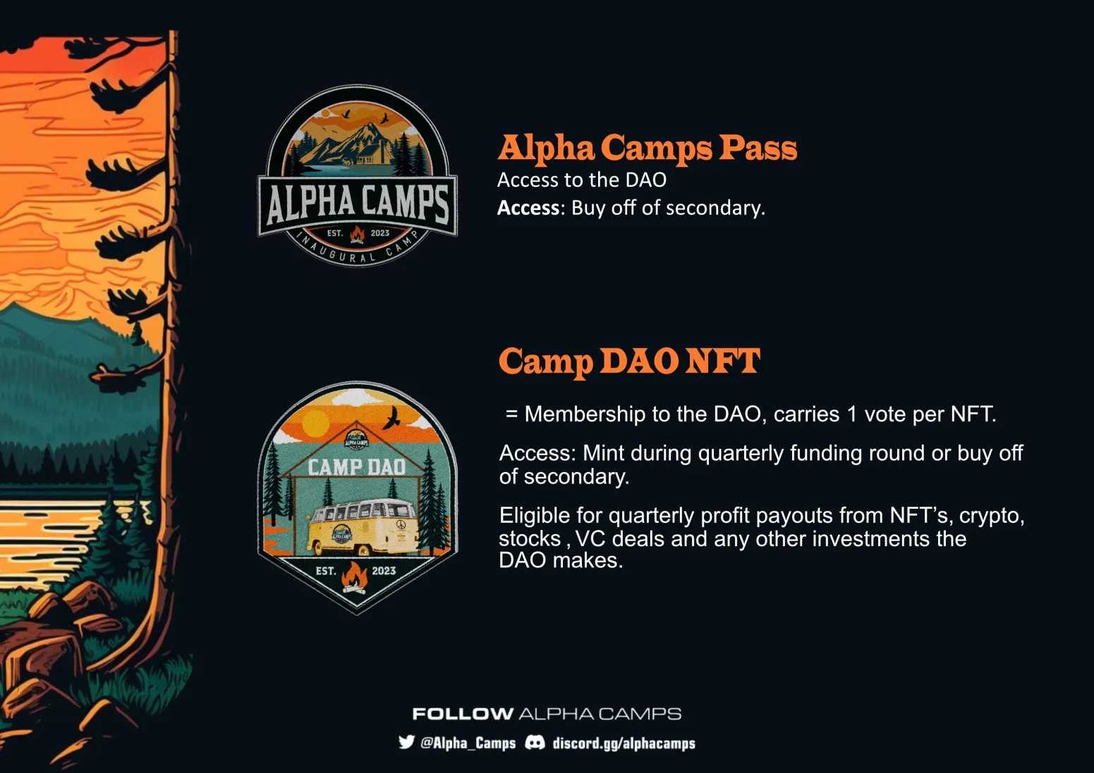 Alpha Camps Pass holders have an amazing opportunity to invest in Alpha Camps DAO, LLC, a legal entity based out of the crypto friendly state of Wyoming (USA).